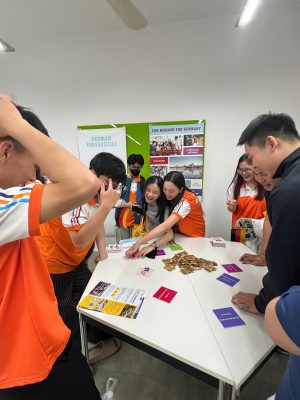 Không chỉ dừng lại ở việc tiếp nhận thông tin, sinh viên FTC khi tham gia Ngày hội Nghề nghiệp Đức 2026 còn được trải nghiệm nhiều mini game bổ ích và thú vị. Các hoạt động tương tác được thiết kế sinh động, xoay quanh kiến thức ngôn ngữ, văn hóa Đức và kỹ năng nghề nghiệp, giúp người tham gia vừa học vừa chơi trong không khí hào hứng. Đây cũng là cơ hội để các bạn rèn luyện phản xạ ngôn ngữ, tăng cường sự tự tin khi giao tiếp và nhận về nhiều phần quà ý nghĩa từ Ban Tổ chức.