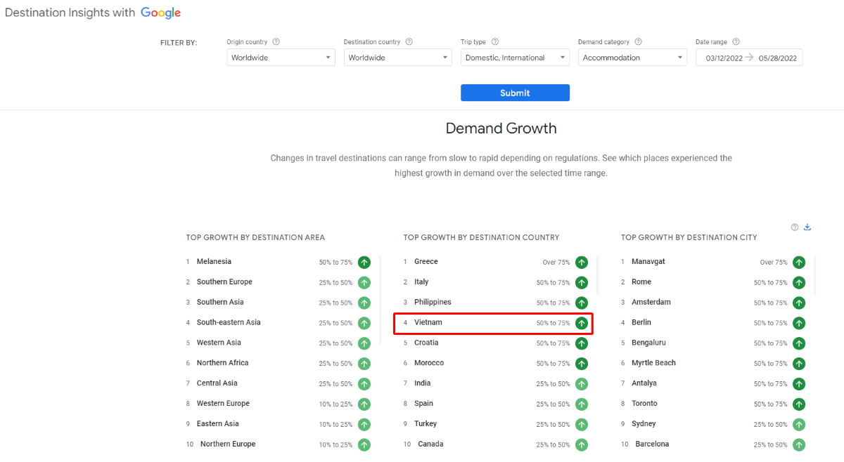 – Dữ liệu từ công cụ theo dõi xu hướng thị trường của Google cho thấy lượng tìm kiếm quốc tế về du lịch Việt Nam đang tăng trưởng khoảng 50%-75%, mức tăng cao thứ 4 thế giới. Đáng chú ý, kể từ sau khi mở cửa hoàn toàn từ 15/3/2022, chỉ số này của […]